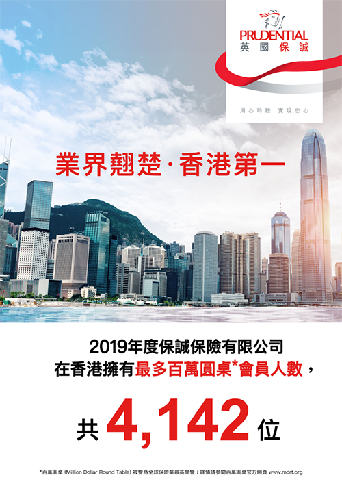 (香港,2019年7月9日)保誠保險有限公司(「保誠」)在2019年百萬圓桌會(MDRT) [1]的多項排名中奪冠。截至2019年7月1日,保誠以4,142名MDRT會員稱冠香港,刷新全港記錄[2],並以728名MDRT超級會員(COT)排名全球第一。作為業界翹楚,保誠自2015年以來一直擁有全港最強大的理財顧問團隊,目前更擁有超過22,000名理財顧問[3]